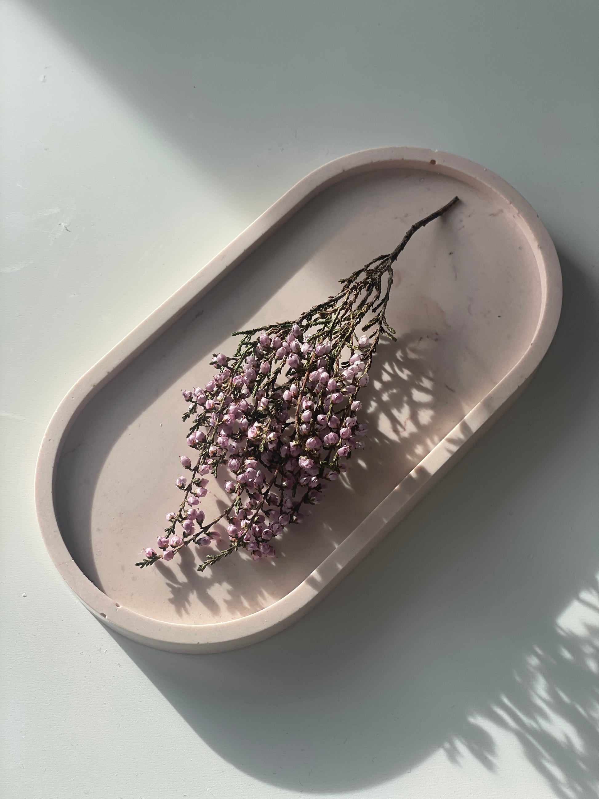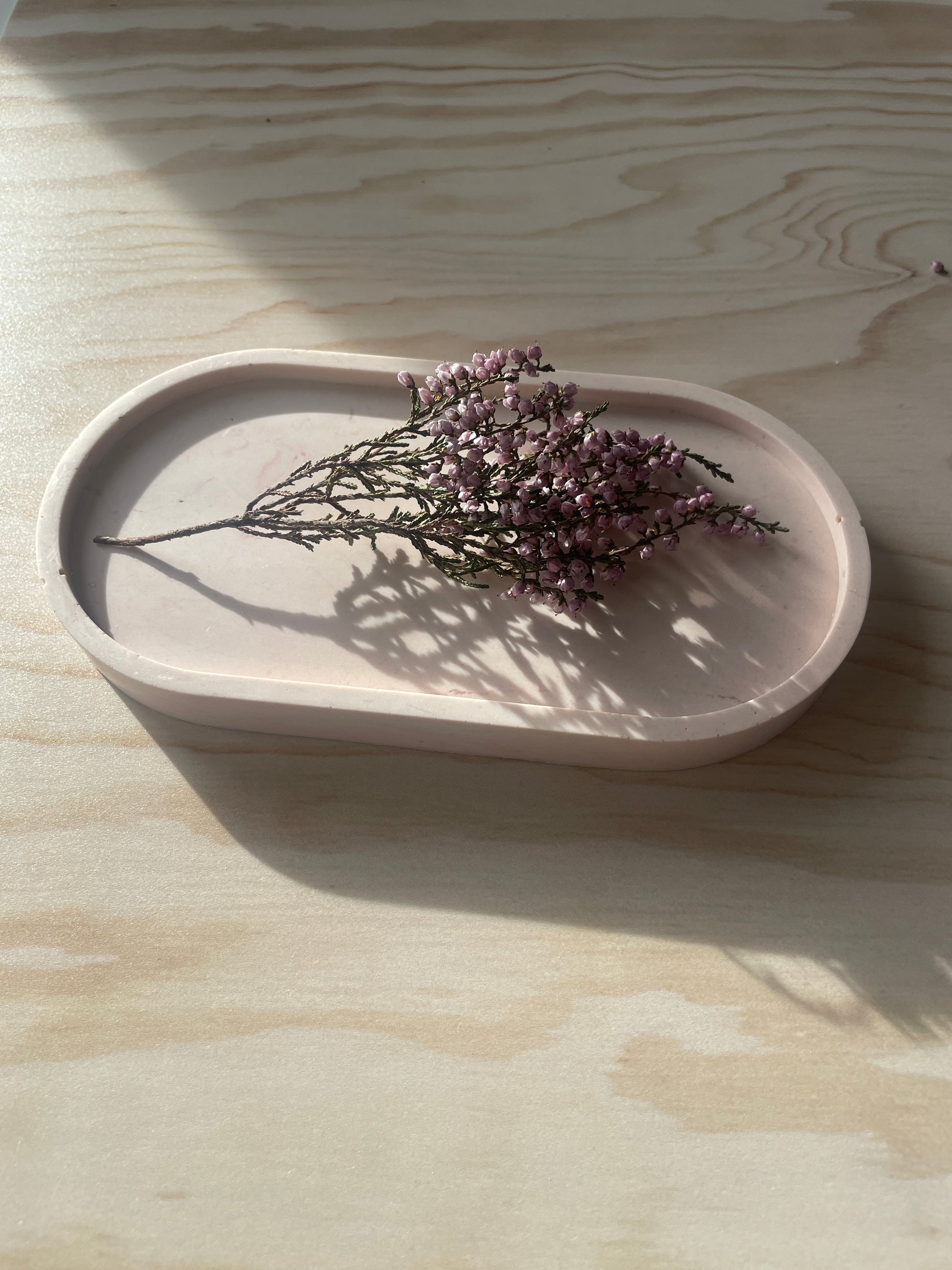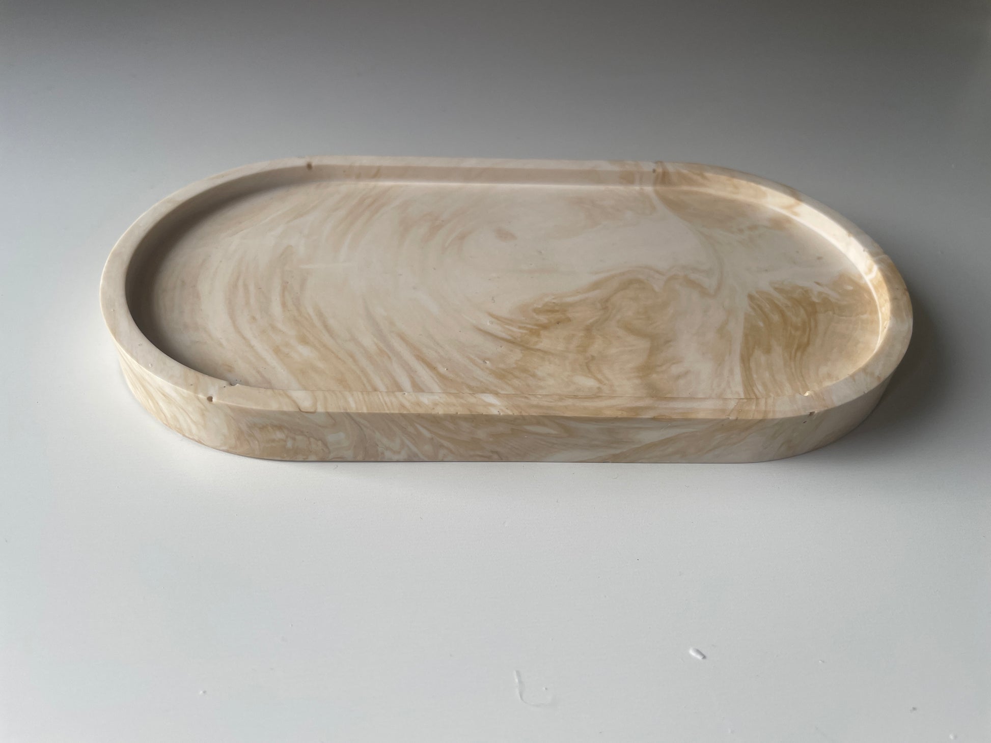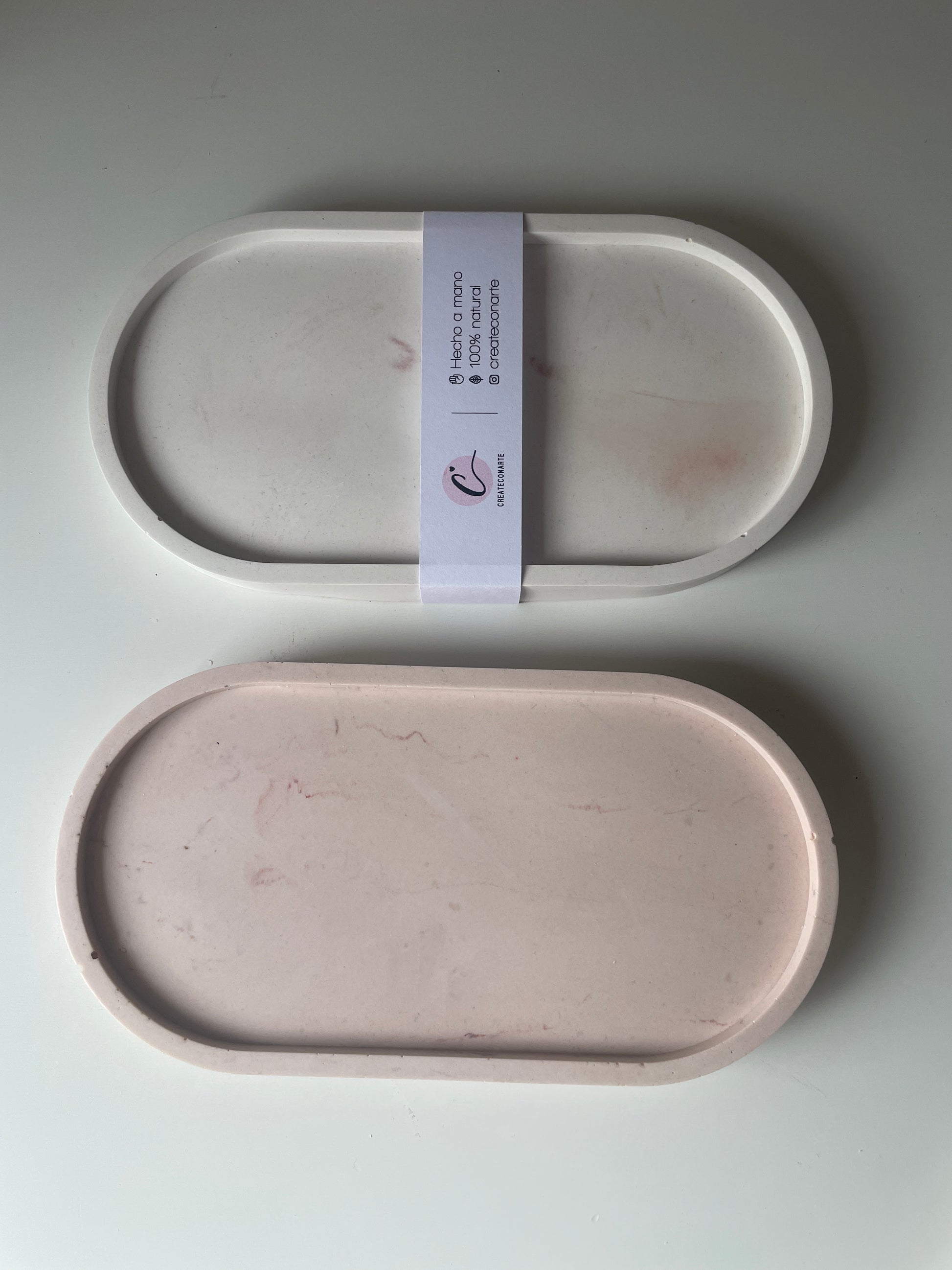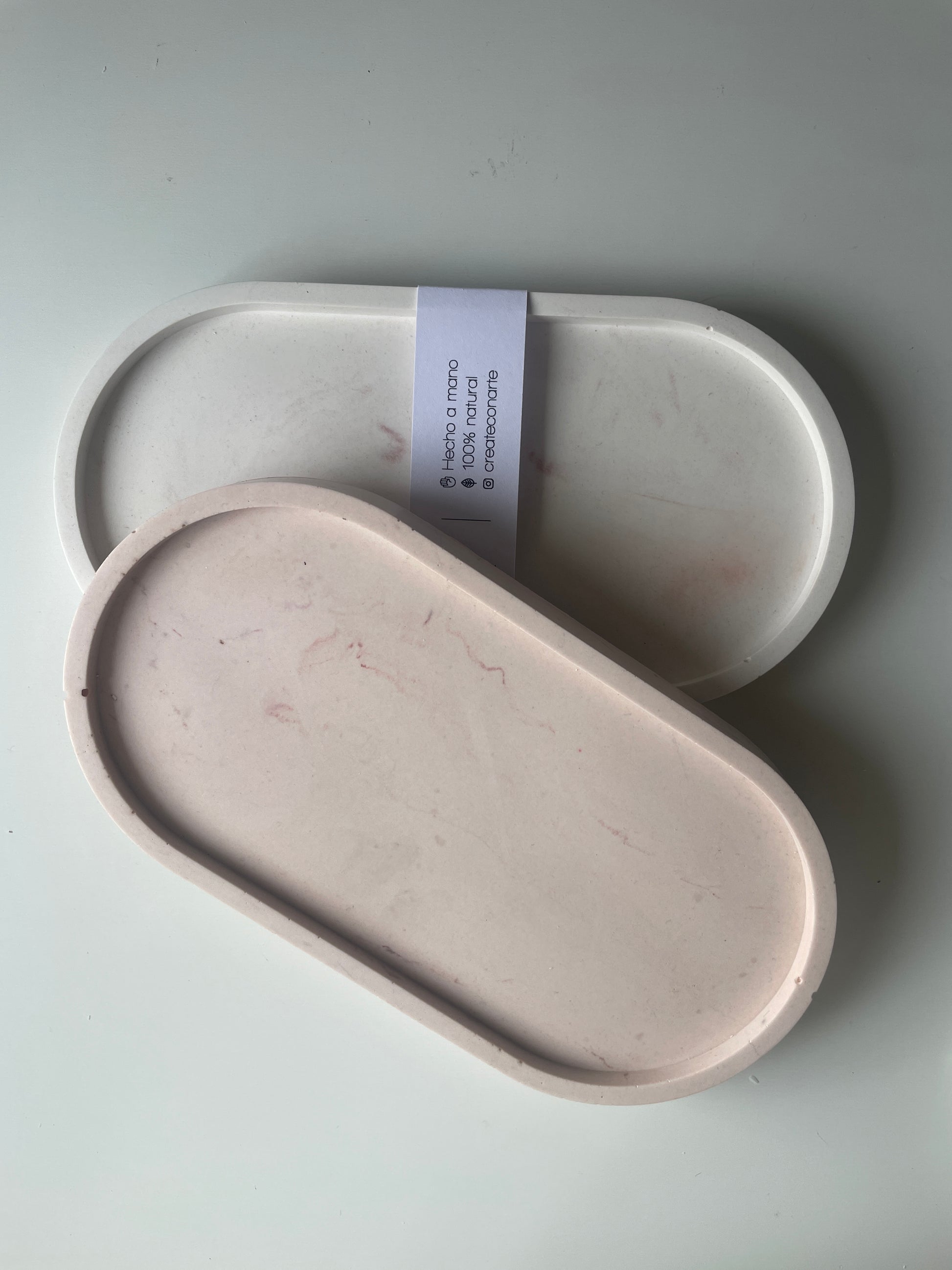 Bandeja decorativa de resina ecológica, hecha a mano con un diseño minimalista y funcional. Ideal para organizar velas, joyas o pequeños objetos, aportando un toque natural y elegante a cualquier espacio del hogar.