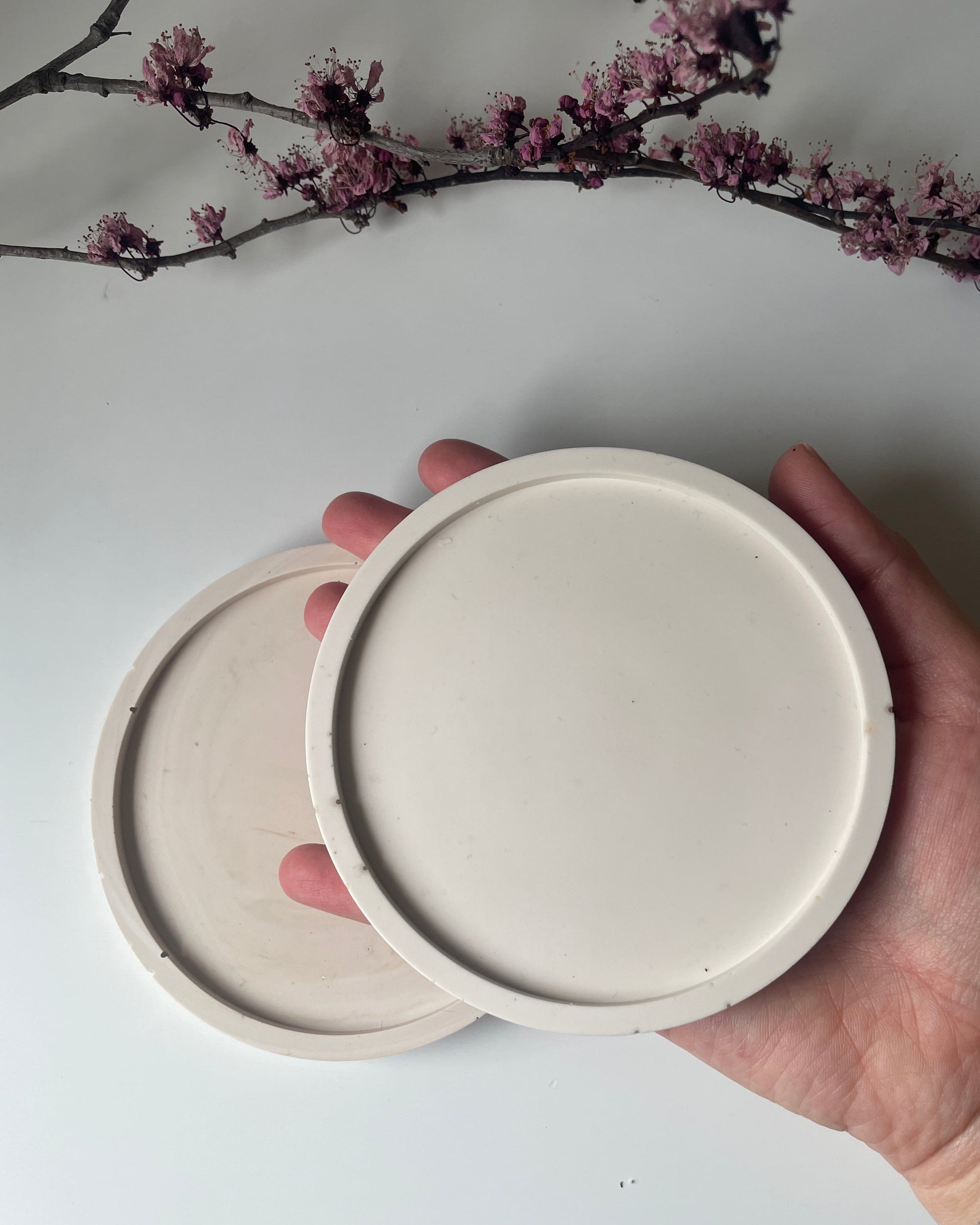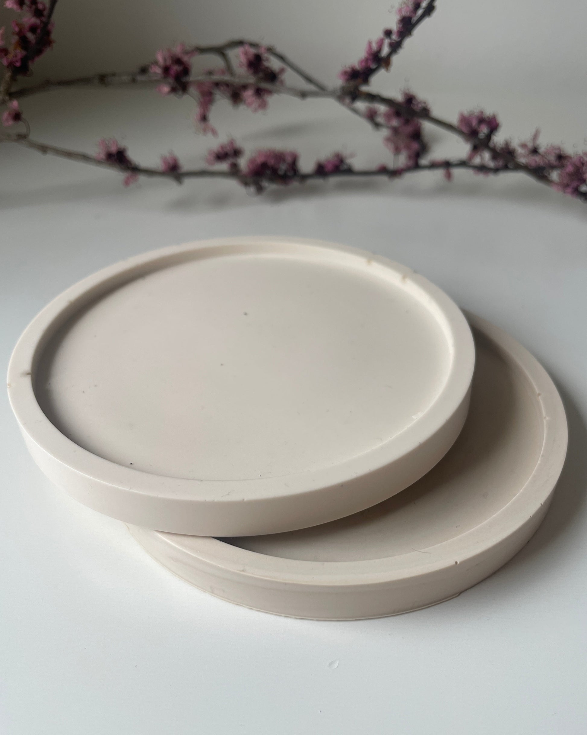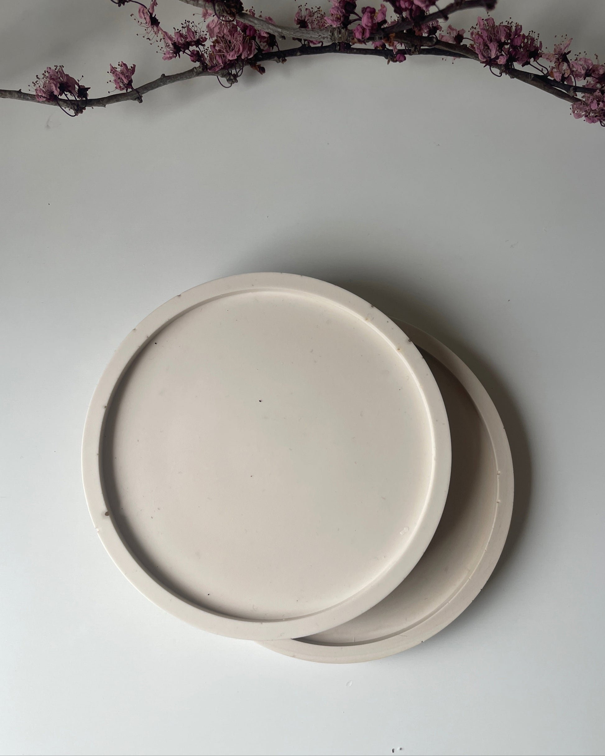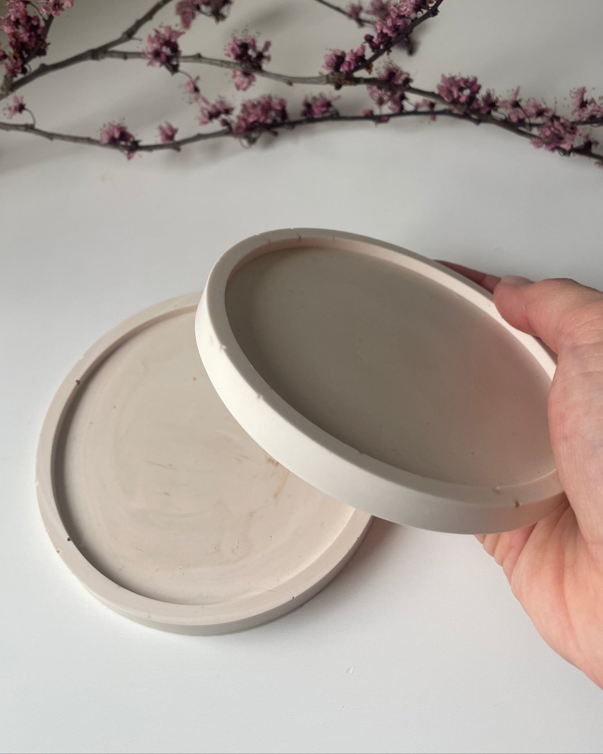 Bandeja decorativa de resina ecológica, hecha a mano con un diseño minimalista y funcional. Ideal para organizar velas, joyas o pequeños objetos, aportando un toque natural y elegante a cualquier espacio del hogar.